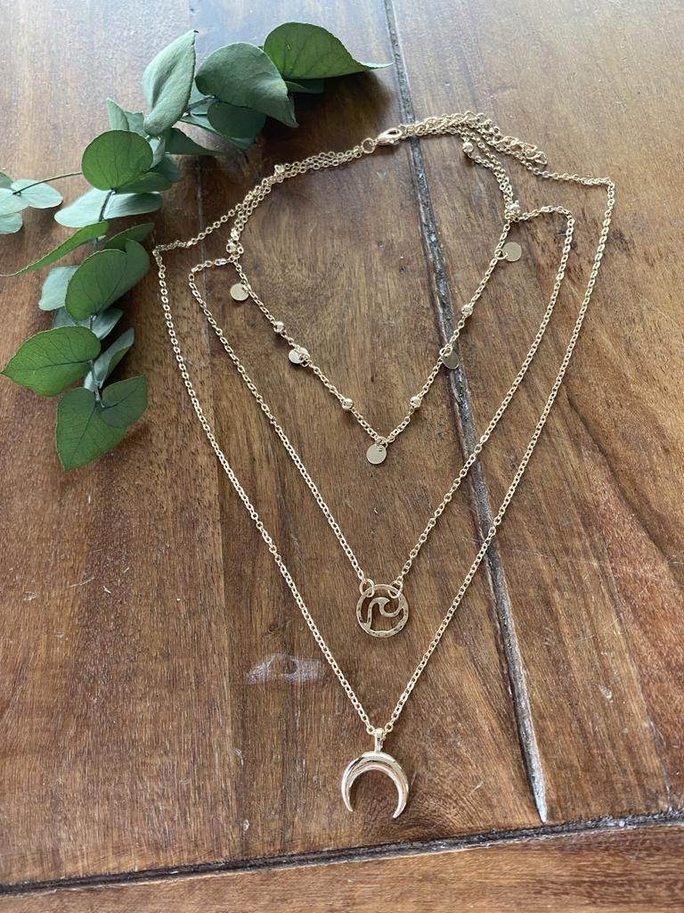 Vintage vícevrstvý křišťálový náhrdelník s přívěskem Dámské Korálky zlaté barvy Měsíc Hvězda Roh Půlměsíc Náhrdelníky Šperky