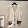 Vesta hongkongského stylu dámská retro ležérní pletená vesta kardiganová bunda skládací o krk svetr bez rukávů vesta dámský top