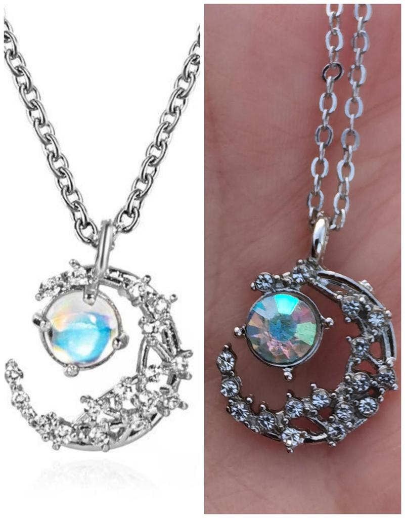 QQs novoluní náhrdelník ženy přívěsek dutý měsíční kámen přívěsek křišťálový meniskus úplňkové slunce měsíc obojek přívěsek šperky dárky
