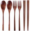 Dětská dřevěná sada lžiček pro 4 osoby, mix barev, 1 sada, lžička + hůlky