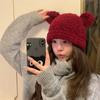Spring new color-blocked pullover hat, hand-knitted woolen hat, mask, integrated warm mask