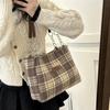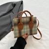 Retro Plaid Woolen PU Patchwork Crossbody Bag New Autumn/ Winter Women's Letter Embroidery Underarm Bags Fashion Handbag