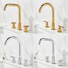 Tuqiu Gold Bathroom Faucet Brass Widespread Basin Faucet Brass Sink Faucet 3 Hole Double Handle Hot & Cold Wash Faucet Water Tap