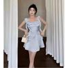 Elegant Party Mini Stain Dress Women Sleeveless Fairy Strap Dress Office Lady Vintage One Piece Dress Korean 2024 Summer