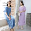 Dámská letní modální noční košile ke kolenům - Krátký rukáv, volný střih, pyžamo ze směsi hedvábí a bavlny