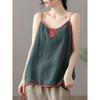 Vintage Woman Tank Tops Summer Solid Cotton Linen Embroidery Spaghetti Strap Loose Casual Blusas Tunic Tops Tee