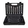 【Box End Extractor Wrench】18pcs 2-in-1 multi-use wrench has a patented tooth feature that works as a regular box end wrench and also works as an extractor wrench. The wrench can grip and remove rounded bolts, stripped bolts, and thin bolts without slipping. 6-point and 3-corner box end design protects fasteners from damage under high torque conditions. 45° offset provides more versatile access.