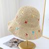 Sweet Color Woven Straw Hat Women's Summer Seaside Beach Hollow Crochet Sunscreen Hat Vacation Big Brim Sun Hat
