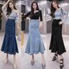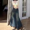 2024 Retro High Waist Wide Leg Denim Skirt with Frayed Edges for Spring & Autumn