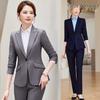 Elevate your professional wardrobe with this sophisticated women's suit set, designed to offer a touch of elegance and authority. Expertly crafted from high-quality polyester, this suit ensures both comfort and durability for a long day of work. The deep blue hue adds a classic and stylish flair, exuding confidence and poise. Tailored to flatter the feminine silhouette, this suit is perfect for making a strong impression in front desk roles or any professional setting. The ensemble embodies a goddess style, ensuring you not only feel empowered but also command respect and admiration in the workplace.