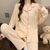 Jarní a podzimní dámské pyžamo, souprava pro volný čas, dívčí kardigan s potiskem srdíček, pyžamo z mačkané látky, souprava s dlouhým rukávem