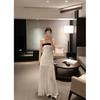 Temperament one-word shoulder dress ruffle edge split engagement evening dress dress niche high-end