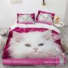 3D Bedding Sets Red Duvet Quilt Cover Set Comforter Bed Linen Pillowcase King Queen 210x210cm Size Pet Cat Design for Boys Girls