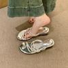 Bow sexy Roman sandals female 2025 summer word with golden rhinestones fairy wear fashion new