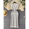 Summer Clothing Graceful Ladies Beads round Neck Sleeveless Slimming Knitted dress Women Fashionable Color Matching French style Sweater Dress