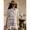 Blacknini "Little Pineapple" Island Country Cotton Lace off-Neck Cut Out Pattern Tops Short Sleeve Shorts
