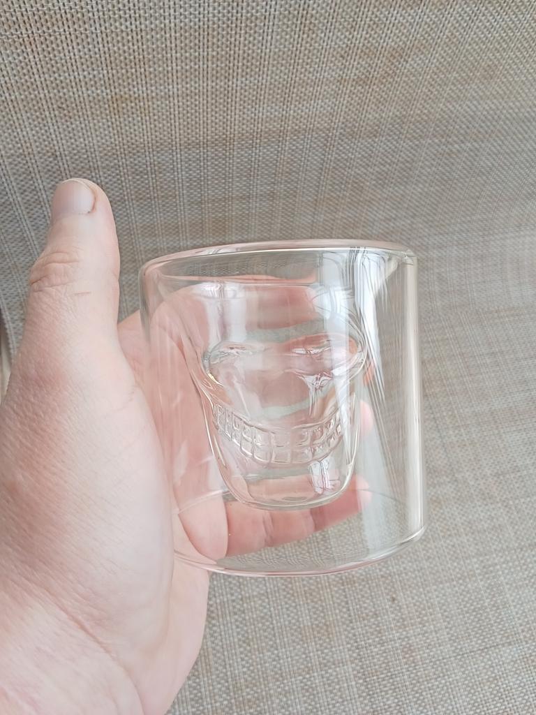 Panák ve tvaru lebky na whisky nebo jakýkoli likér podle vašeho gusta. Tento panák, který se liší od toho, na co jsme zvyklí, má uvnitř tvar lebky. Doporučuji 👍 👍 👍🤩 👌 👌 👌. 📦 Obsah obsahu balíčku Panák ve tvaru lebky. 👍 Pro: Doručení do Španělska do 24 dnů. ✈️ Dobře zabalené na cestu. Skvělá prezentace v krabici. Kvalita odpovídající produktu. Je to sklenice odlišná od toho, co jsme zvyklí mít v rukou.. Kapacita: 75ml 👎Kontrasty: Není co vyzdvihovat. .