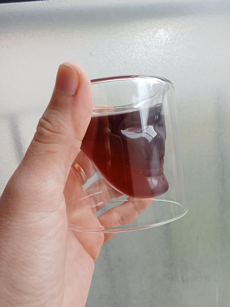 Panák ve tvaru lebky na whisky nebo jakýkoli likér podle vašeho gusta. Tento panák, který se liší od toho, na co jsme zvyklí, má uvnitř tvar lebky. Doporučuji 👍 👍 👍🤩 👌 👌 👌. 📦 Obsah obsahu balíčku Panák ve tvaru lebky. 👍 Pro: Doručení do Španělska za 25 dní. ✈️ Dobře zabalené na cestu. Skvělá prezentace v krabici. Kvalita odpovídající produktu. Je to sklenice odlišná od toho, co jsme zvyklí mít v rukou.. Kapacita: 75ml 👎Kontrasty: Není co vyzdvihovat. .