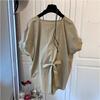 In-Stock Korean Style Bowknot Slit Short Sleeve Women's Pullover Top