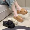 2025 new summer thick-soled heightening shoes one-word slippers women's versatile casual cool slippers Velcro not tired feet