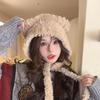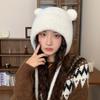 Japanese Cute Winter Bear Color Blocking Ear Knitted Strap Lei Feng Hat Autumn and Winter Warm Ear Protection Wool Hat