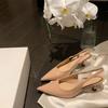 High-heeled baotou kitten heel temperament pointed head half-drag wear thin heel apricot single shoes French stunning sandals 2025 summer
