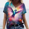 Colorful Animal Bird 3D Digital Printed Women's Casual and Comfortable V-neck Short Sleeved T-shirt