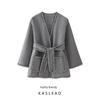 Kaslead New Arrival Women's Clothing Fashion Style with Belt Soft V-neck Long Sleeves Jacket Outwear 1255837