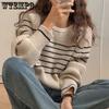 Chic Autumn and Winter Pullover Round Neck Thick Women's Knitwear All-match Loose Striped Long-sleeved Sweater Women