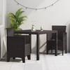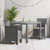 Notre ensemble de bistro en plastique sera un excellent choix pour les repas en plein air dans le jardin, sur la terrasse ou au camping. L'ensemble de bistro à l'aspect de rotin est en plastique solide, ce qui le rend durable ainsi que résistant aux intempéries et facile à nettoyer. De plus, son design à l'aspect du rotin ajoute une touche de charme naturel à votre espace de vie extérieur. Le mobilier de jardin est également léger et facile à déplacer. La table et les chaises de jardin sont faciles à assembler. La livraison comprend 1 table, 2 chaises et 2 coussins de siège. Maximum 110 kg par siège. Soyez conscient du risque de feu ouvert et d'autres sources de forte chaleur à proximité de l'appareil.. Couleur : anthracite. Matériau : plastique. Matériau du coussin : 100 % polyester. Dimensions de la table : 79 x 79 x 72 cm (L x l x H). Dimensions de la chaise : 59 x 57 x 89 cm (I x P x H). Largeur du siège : 45 cm. Profondeur du siège : 50 cm. Hauteur du siège à partir du sol (sans le coussin de siège) : 43,5 cm. Épaisseur du coussin : 3 cm. Avec un design à l'aspect de rotin. Résistance aux intempéries. La livraison comprend 1 table, 2 chaises et 2 coussins de siège.