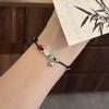 Pack of 2 Fish Charm Braided Bracelets Adjustable Red Black Cord Jewelry Wristband Accessory for Couples Friendship