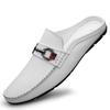 Summer Breathable Shoes Men Genuine Leather Half Shoes Slip on Moccasins Casual Italian Style Luxury Brand Half Loafers