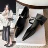 2025 spring new French temperament Mary Jane shoes women's word with Korean version commuter pointed thick heel versatile single shoes