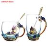 Rose Flower Cup Enamel Water Cup Heat-resistant Glass Cup Enamel Coffee Tea Cup Mug 3D Rose Butterfly Glass Cups Wedding Gift