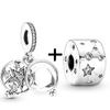 2pcs /Lot 2022 New Silver Color Love Heart Star Beads Pendant Fit Original Brand Charms Bracelet Women Jewelry Gift 45 Styles
