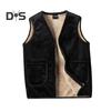 Men Vest Coat V-Neck Sleeveless Solid Color Velvet Lined Vest Coat with Pockets Zipper Closure Thickened Warm Bottoming Waistcoat