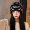 Japanese Style Striped Letter Loose Large Headed Woolen Cap Warm and Versatile for Children In Autumn and Winter Knitted Cap Pile Cap for Men