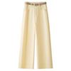 Introducing the vibrant Women's Yellow High Waist Straight Leg Jeans, perfect for adding a pop of color to your spring and autumn wardrobe. Designed with a high waistline, these jeans effortlessly combine a slimming fit with a relaxed, loose silhouette. The cropped length makes them a trendy and versatile choice for the season. Featuring practical pockets for added functionality, the sportive style ensures both comfort and fashion-forward appeal. Crafted with unique materials, these jeans are an essential addition for those looking to brighten up their casual attire.