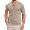 Solid Color Short Sleeve Henry Neck Men's T Shirts Basic Button Top Tees