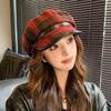 New retro polished plaid soft brim cap women's literary small fresh beret pastoral newsboy hat