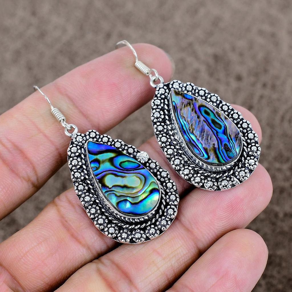 Abalone Shell Gemstone Handmade 925 Sterling Silver Jewelry Earring 2.17" KKG-696