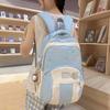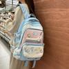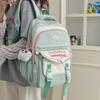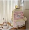 Color Simple Blocked Letter Pattern Student Backpack With Badge Pendant And