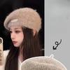 Romantic wool knit hat, thickened thermal casual beret autumn and winter gray black wool hat