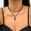Gothic cross necklace layered pearl bead cross pendant necklace punk retro cross necklace women's thick cross necklace