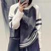 Maglione pullover donna manica lunga contrasto temperamento autunno/inverno O collo contrasto colore comodo maglione lavorato a maglia da donna
