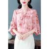 Elegant Ribbon Printed Long Sleeved Shirt for Women, Spring Commuting Versatile Shirt