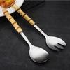 2 pezzi di posate da tavola in argento 304 in acciaio inossidabile con manico in legno di bambù, per servire cibo, insalata, forchetta, cucchiaio, set da tavola