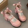 Sweet Bowknot Women's Shoes Comfort Buckle Thick High Heels Round Toe Girls Lolita Mary Jane Shoes Woman Party Wedding Shoe34-43
