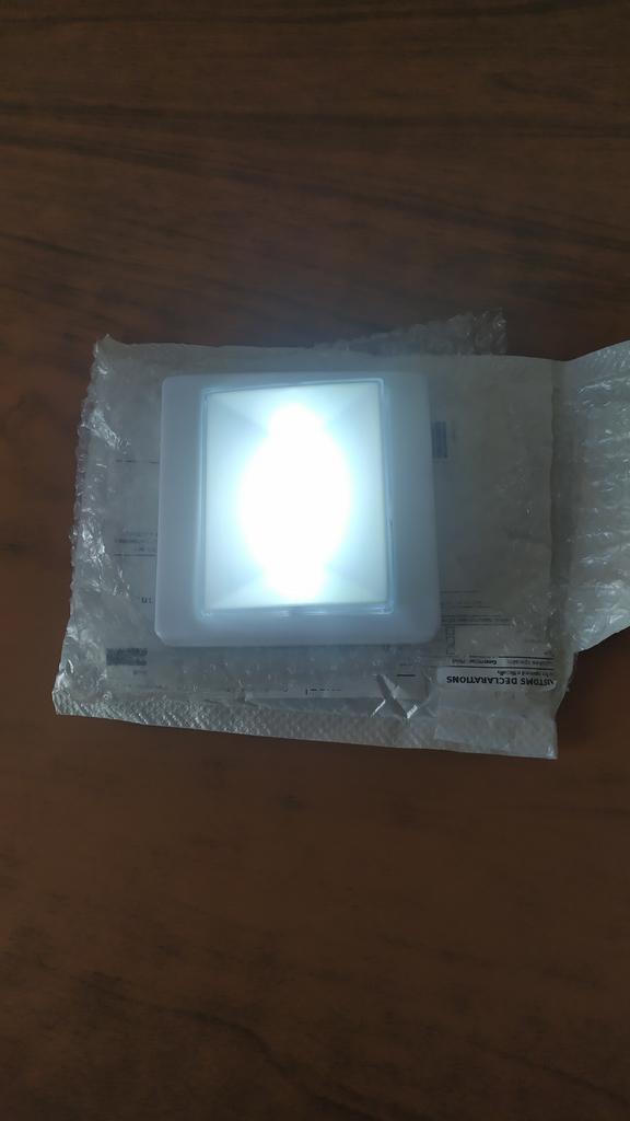 The lamp-switch shines very brightly. Beautifully illuminates the entire room, which is not large. And it holds well on magnets, you can attach it to something metal. There are two more velcro in the set. Product appearance is good. Operates on three mini-finger batteries. I recommend Thanks to the seller and Joom.