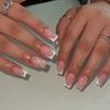24 Pieces New Simple French White Edge Manicure Valentine's Day Wear Nail Red Bow Repeatable Nail Piece